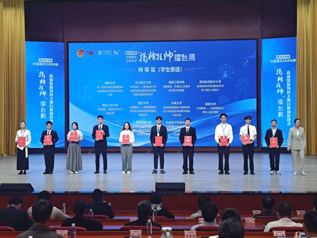 10月12日至14日,第十九届“挑战杯”全国大学生课外学术科技作品竞赛2025“揭榜挂帅”擂台赛(高端装备主擂台)全国总决赛在湖南长沙顺利落幕。我校机械工程学院两支参赛团队凭借出色表现,从全国121所高校、302支顶尖团队中脱颖而出,双双荣获全国特等奖,实现我校在该赛事中从“零”到“双冠”的历史性突破。