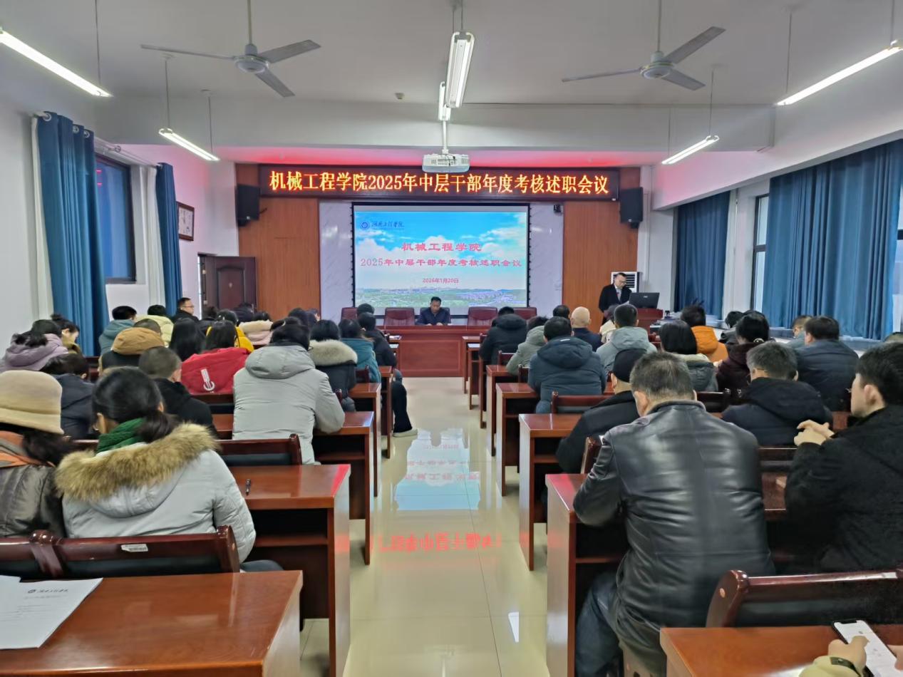 1月21日上午,机械工程学院在机械楼312会议室召开2025年度中层干部考核述职会议。会议由校党委委员、副校长魏克湘主持,学校组织部工作人员、学院领导班子成员及全体教职工参加会议。