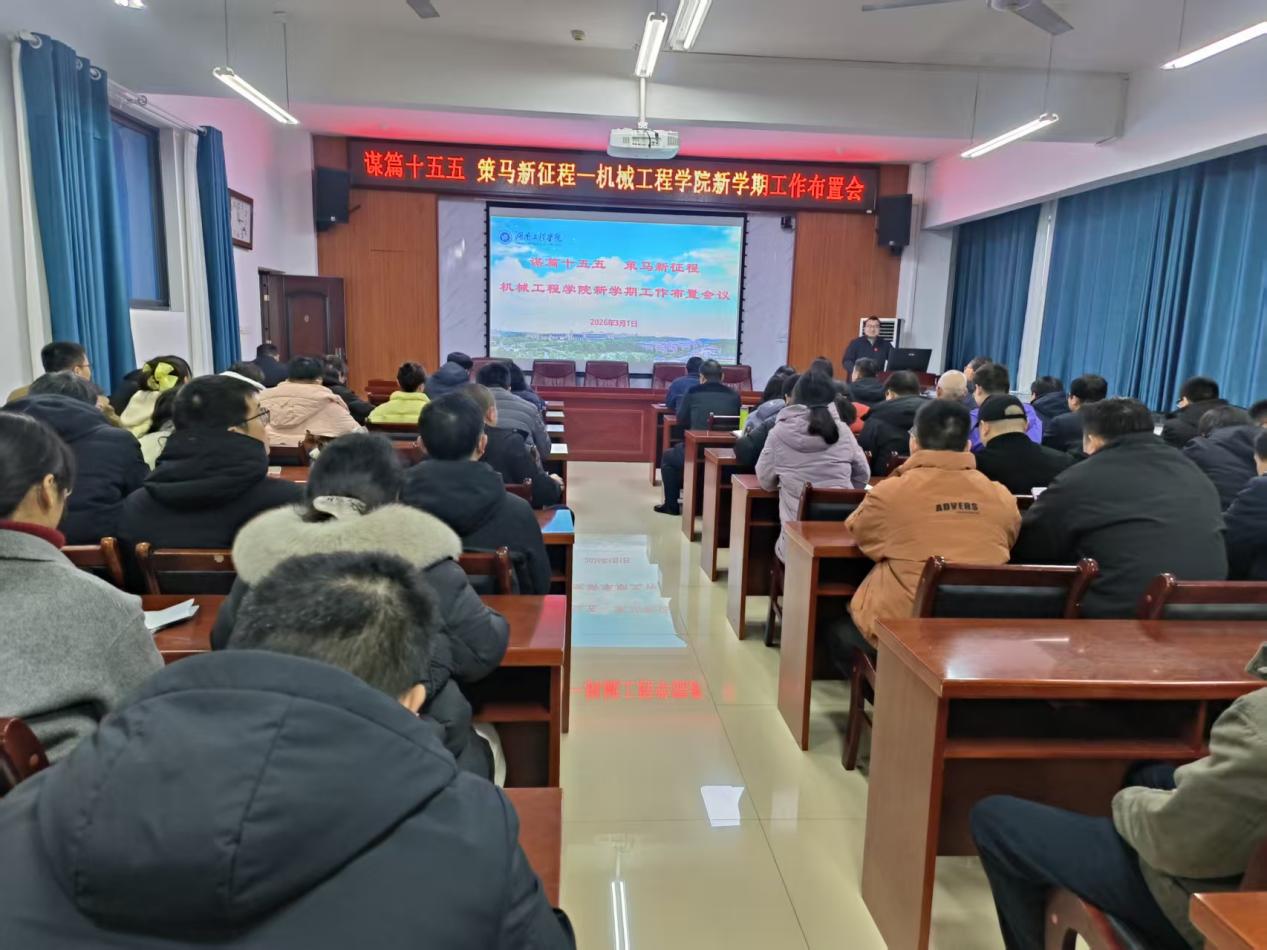 为科学谋划学院发展蓝图,扎实推进新学期各项工作,3月1日下午,机械工程学院在机械楼312会议室召开了新学期工作布置会。会议由学院党委书记、院长邹鸿翔主持,全体领导班子成员及全院教职工参加会议。
